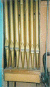 The extant Great 8' Open Diapason pipes are painted gold with brown