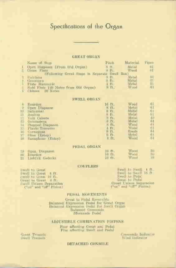 Flute 8 Dulciana 8 Gemshorn 8 Hohlflute 4 Flute