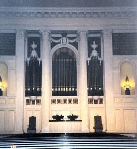 Solo 8 Stentorphone 8 Flauto Major 8 Gamba Granda 8 Gamba Celeste 4 Wald Flute 8 Orchestral Oboe 16 Tuba Profunda 8 Harmonic Tuba 4 Harmonic Clarion Tremolo |