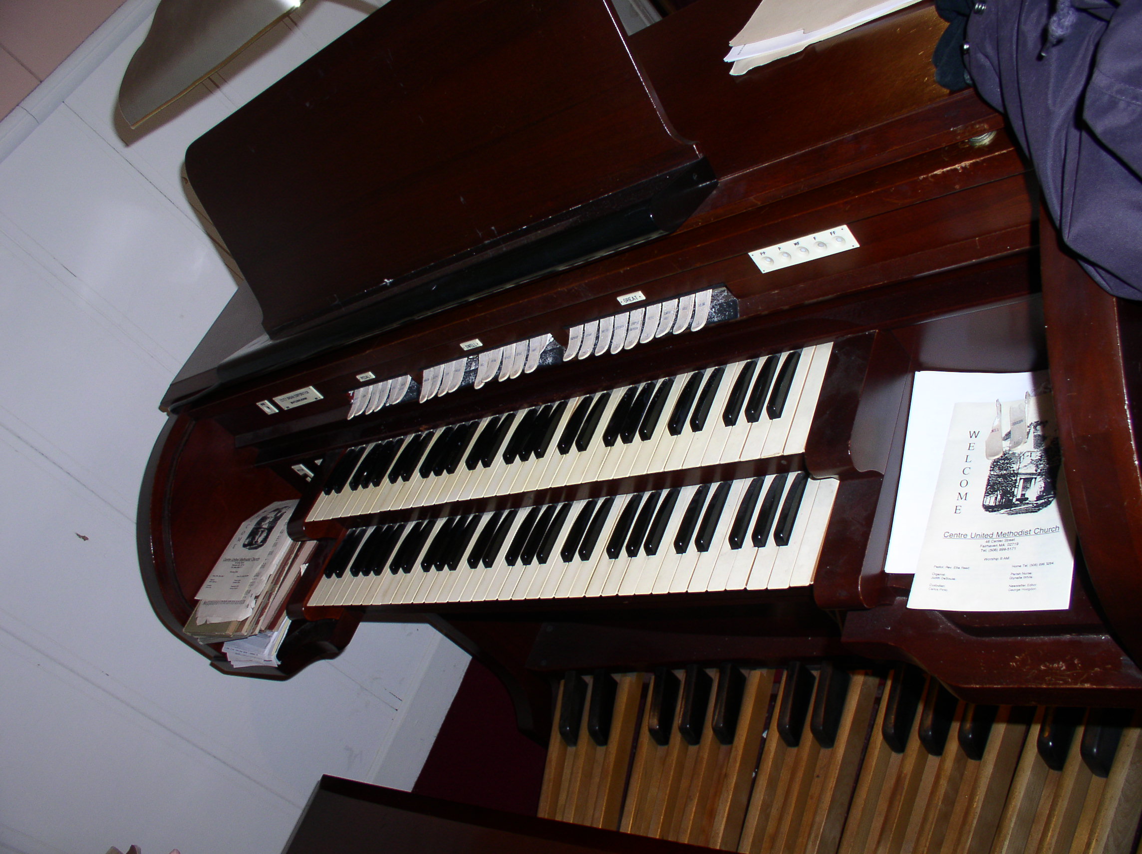 The console has the Estey wooden stop relays, which appear to be in