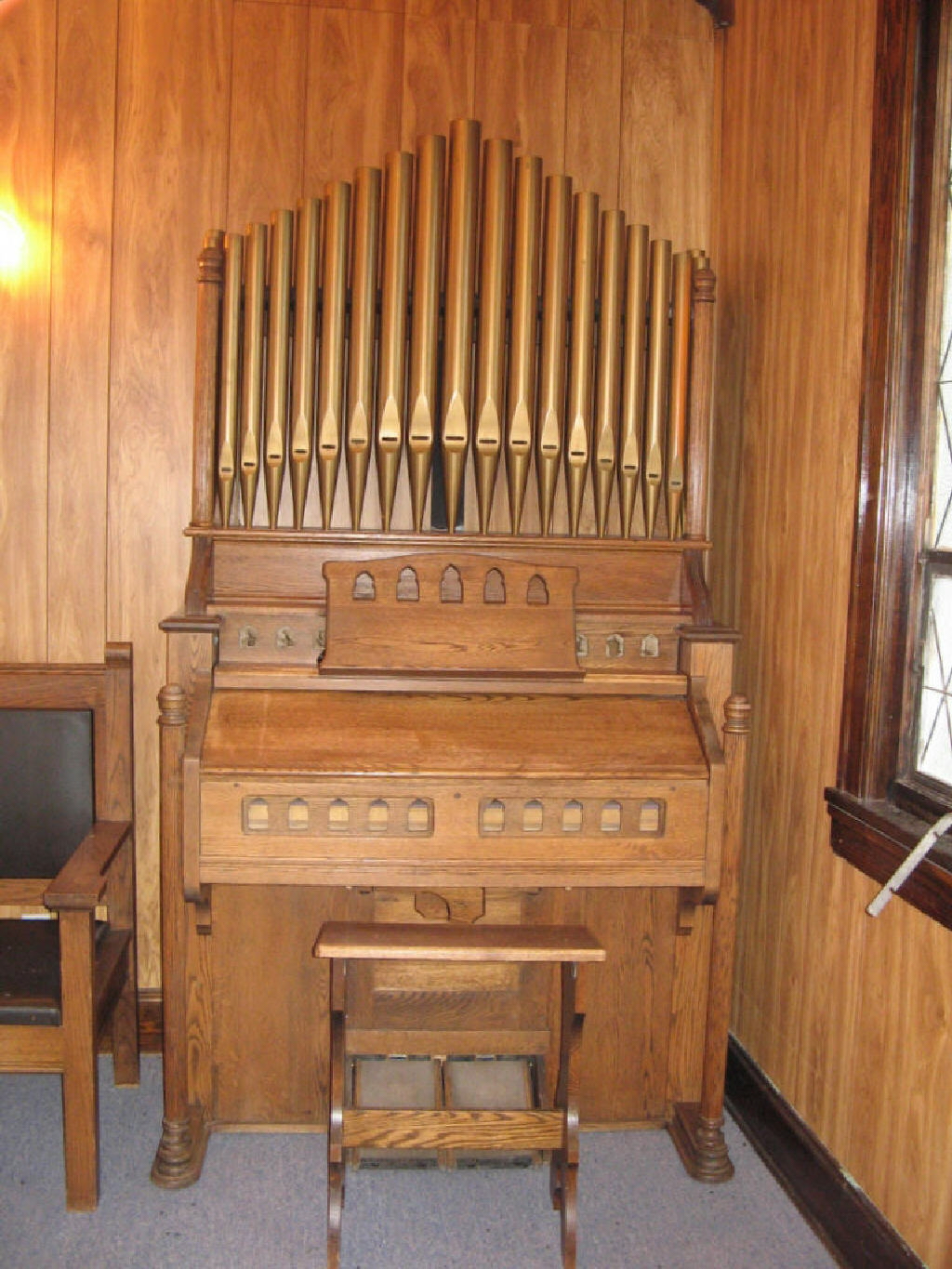 Diapason 8 Dulciana 4 Flute 8 Vox Jubilante Treble Coupler Tremolo |
